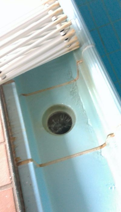- Wasser läuft durch Fliesenfugen direkt in die Überlaufrinne